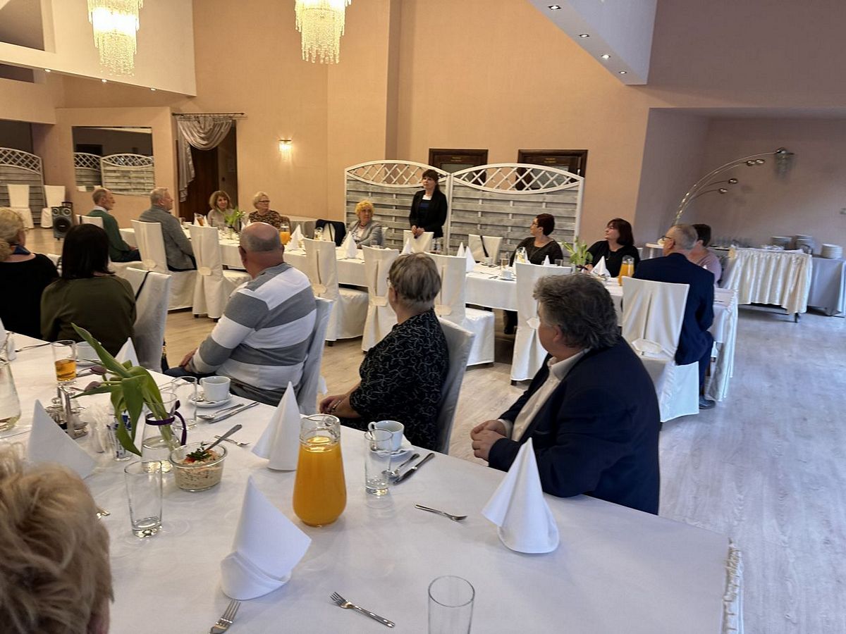 Pożegnanie emerytów, rencistów oraz osób przechodzących na świadczenie kompensacyjne z mysłowickich placówek oświatowych w Hotel Trojak w Mysłowicach.