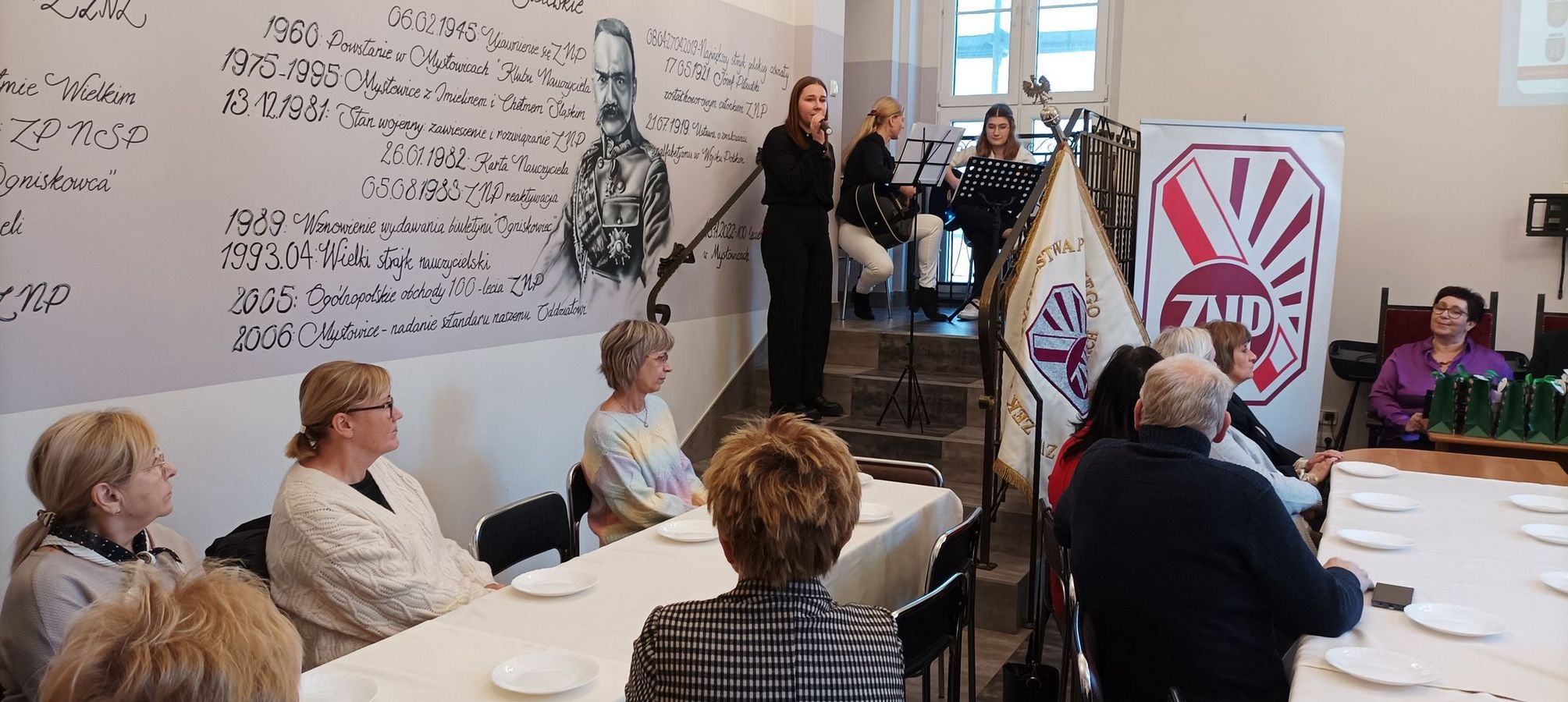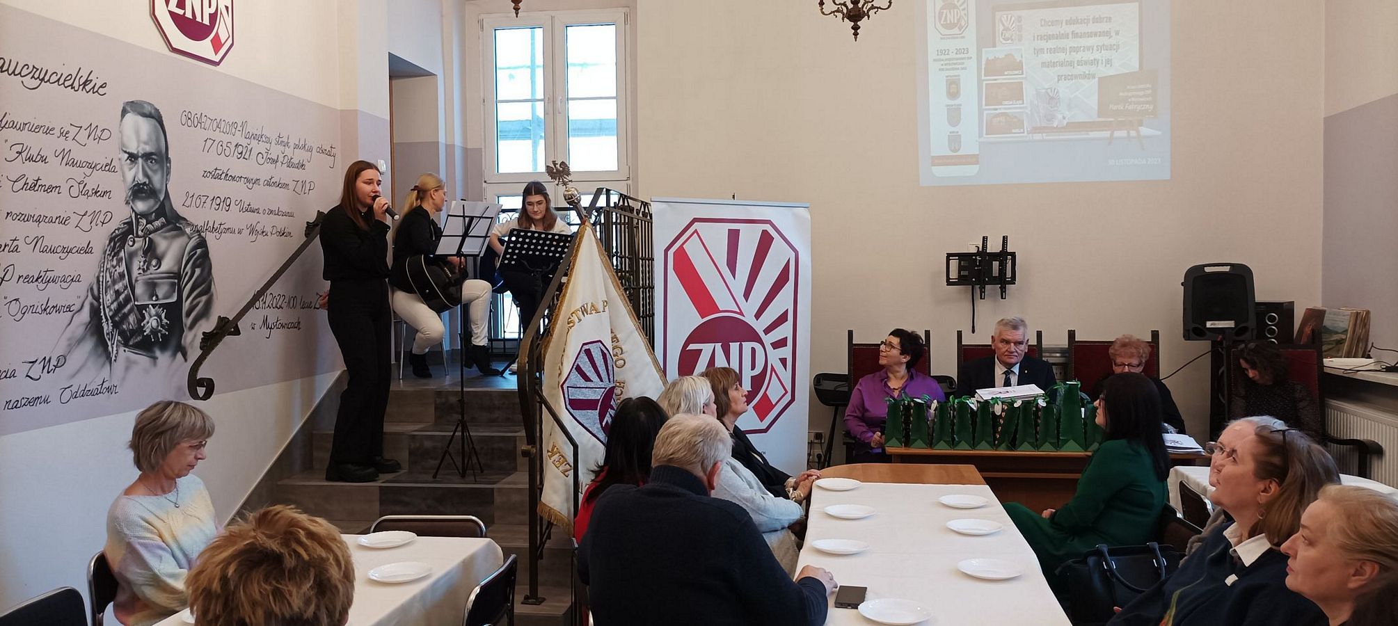 Kolejnym punktem programu był występ artystyczny, który przygotowany został przez Kol. Karinę Krechowiecką z Młodzieżowego Domu Kultury. Wystąpiła przed nami z mini recitalem wokalnym wychowanka MDK-u - Oliwia Kotara. Akompaniowały jej na gitarach - wychowanka MDK-u - Natalia Gajda oraz wychowawczyni Karina Krechowiecka. Występujący zebrali gromkie brawa.