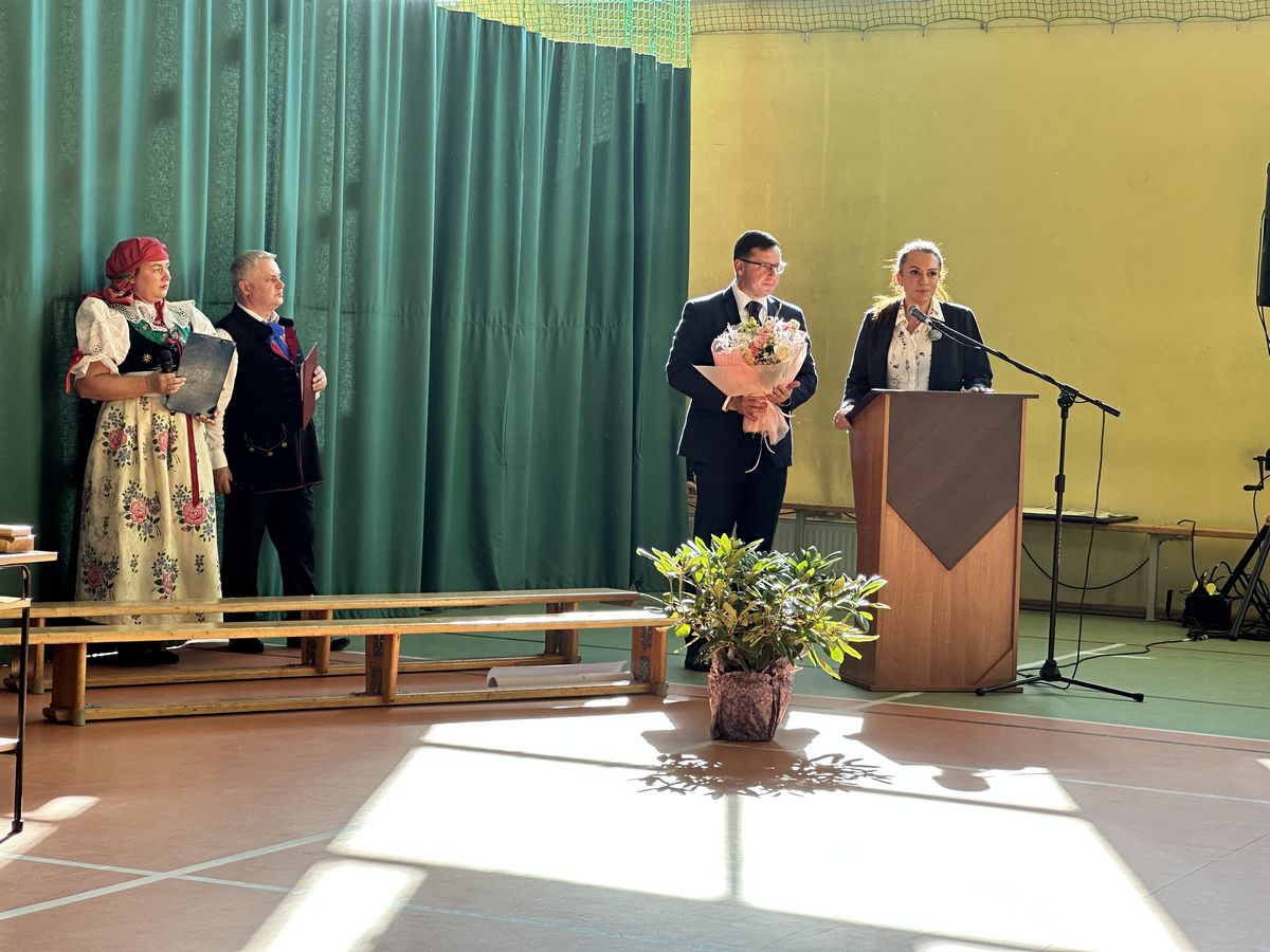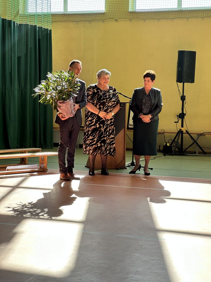 Prezes naszego oddziału międzygminnego ZNP złożył całej społeczności szkolnej gratulacje i serdeczne życzenia wielu kolejnych lat pełnych sukcesów.
