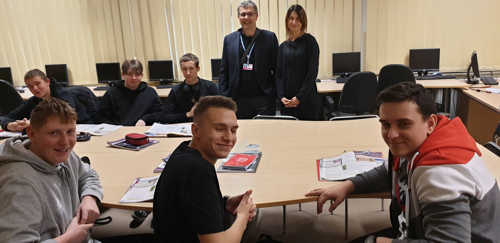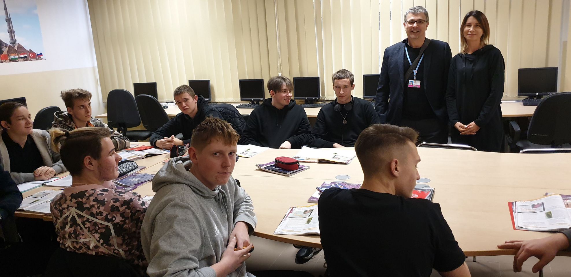 W czwartek 13.12.2018 kol. Earl Burt, Skarbnik Ontario Secondary School – Teachers Federation Związku Zawodowego Nauczycieli Szkół Średnich Stanu Ontario (16 mln mieszkańców) zrzeszającego ok.40.000 nauczycieli odwiedził Mysłowice. Earl jest uczestnikiem COP 24 i w trakcie spotkania na panelu związkowym COP 24 w sobotę w Hotelu Trojak w Myslowicach poprosił o możliwość obejrzenia szkoły średniej. Dzięki uprzejmości kol. Ewy Zając Dyrektorki CKZiU zwiedził nasza „szkołę na górce” i CKP.