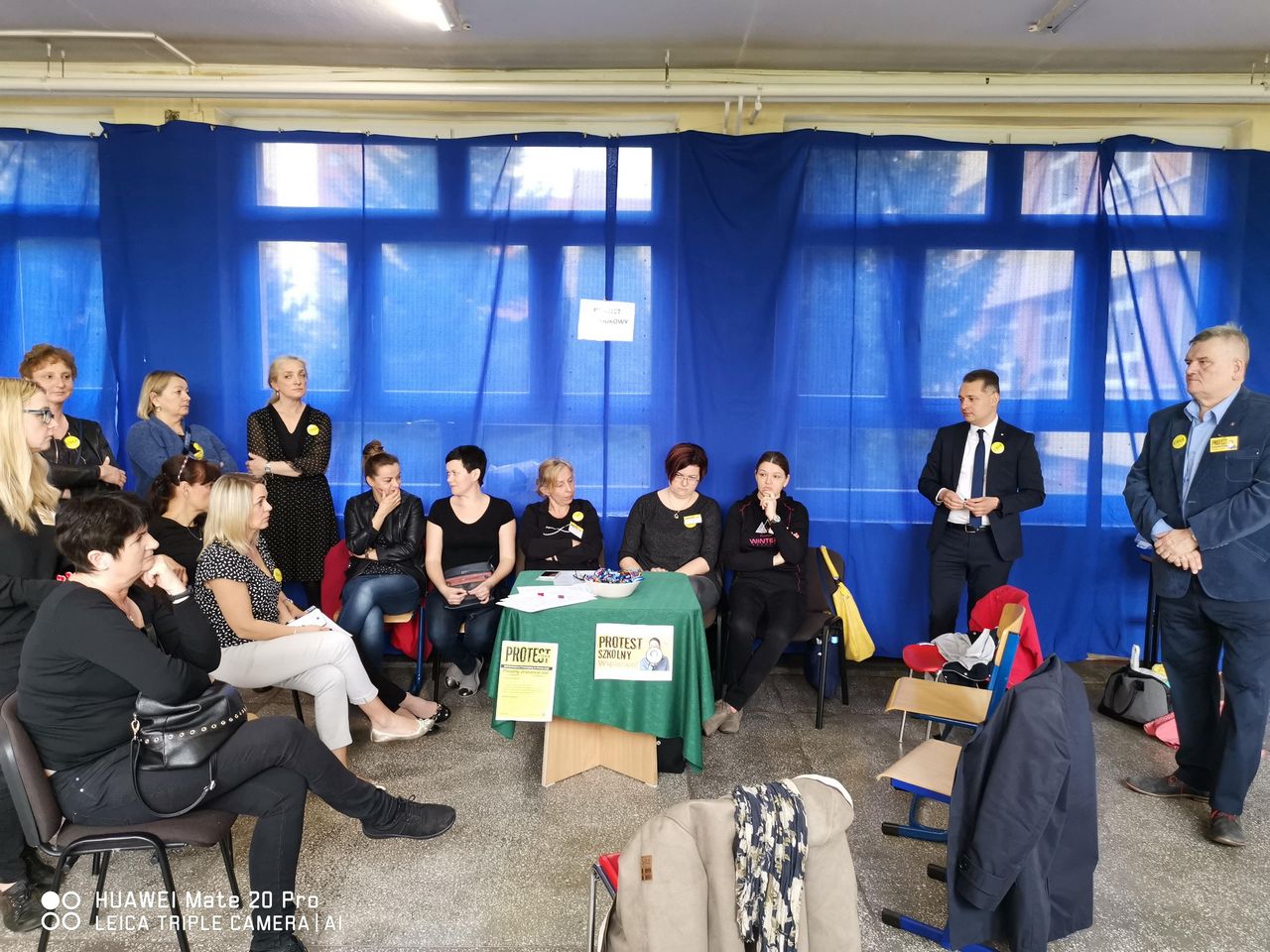 W dniu wczorajszym strajkujących pracowników SP 13 odwiedzili: poseł na Sejmu Pan Wojciech Król oraz Przewodnicząca Komisji Edukacji, Kultury i Sportu Rady Miasta Mysłowice, Radna z Klubu Radnych Koalicja Obywatelska Pani Joanna Pniok – emerytowana Dyrektorka SP 13.