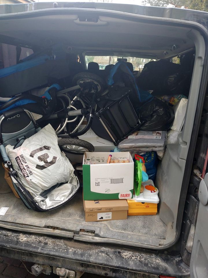 Przywieźliśmy z kol. Iwoną Załucką Prezesem Oddziału ZNP w Sosnowcu m.in.: wózki dziecięce, płyny i proszki do prania, pasty do zębów, materiały szkolne, papiernicze, ubrania, koce, kremy, środki higieny osobistej.