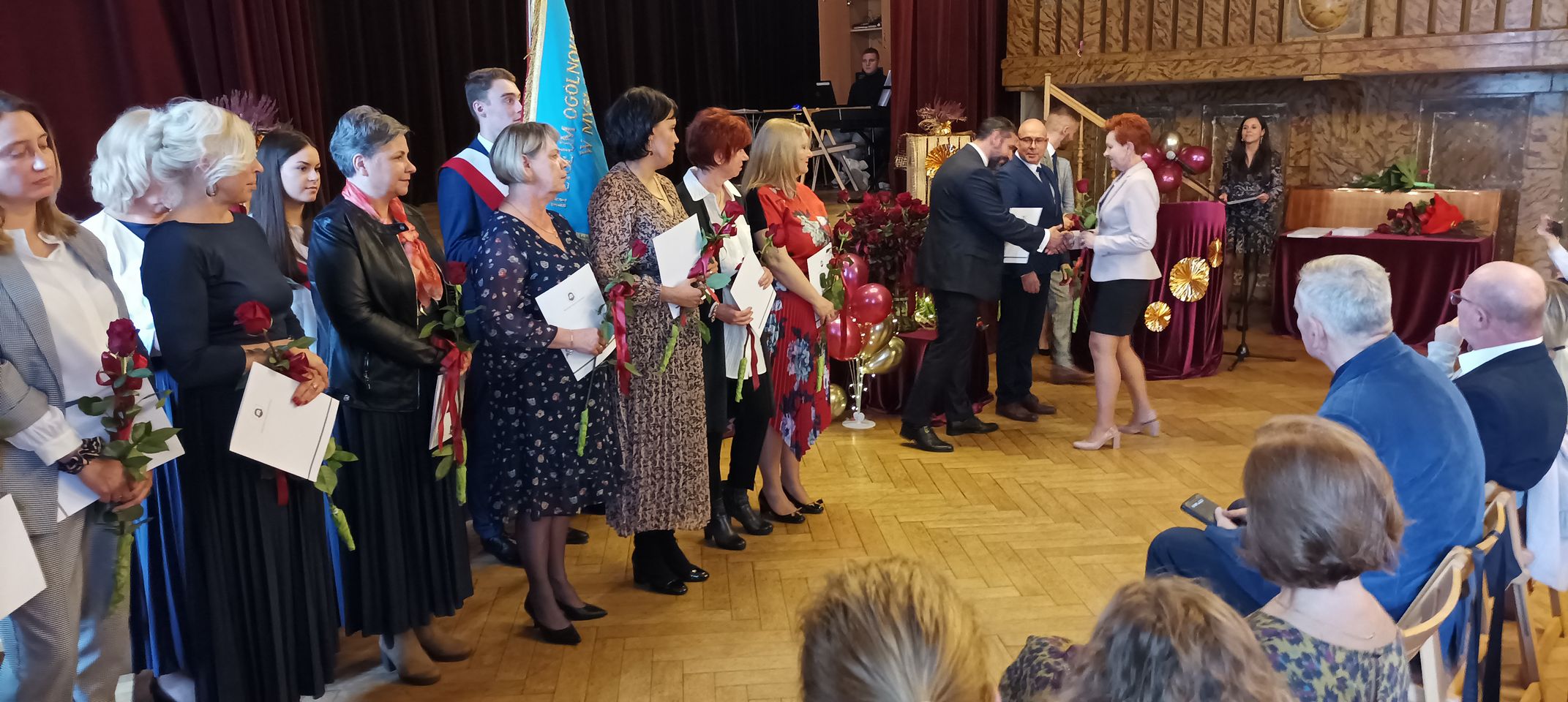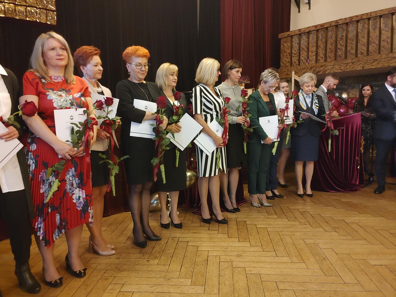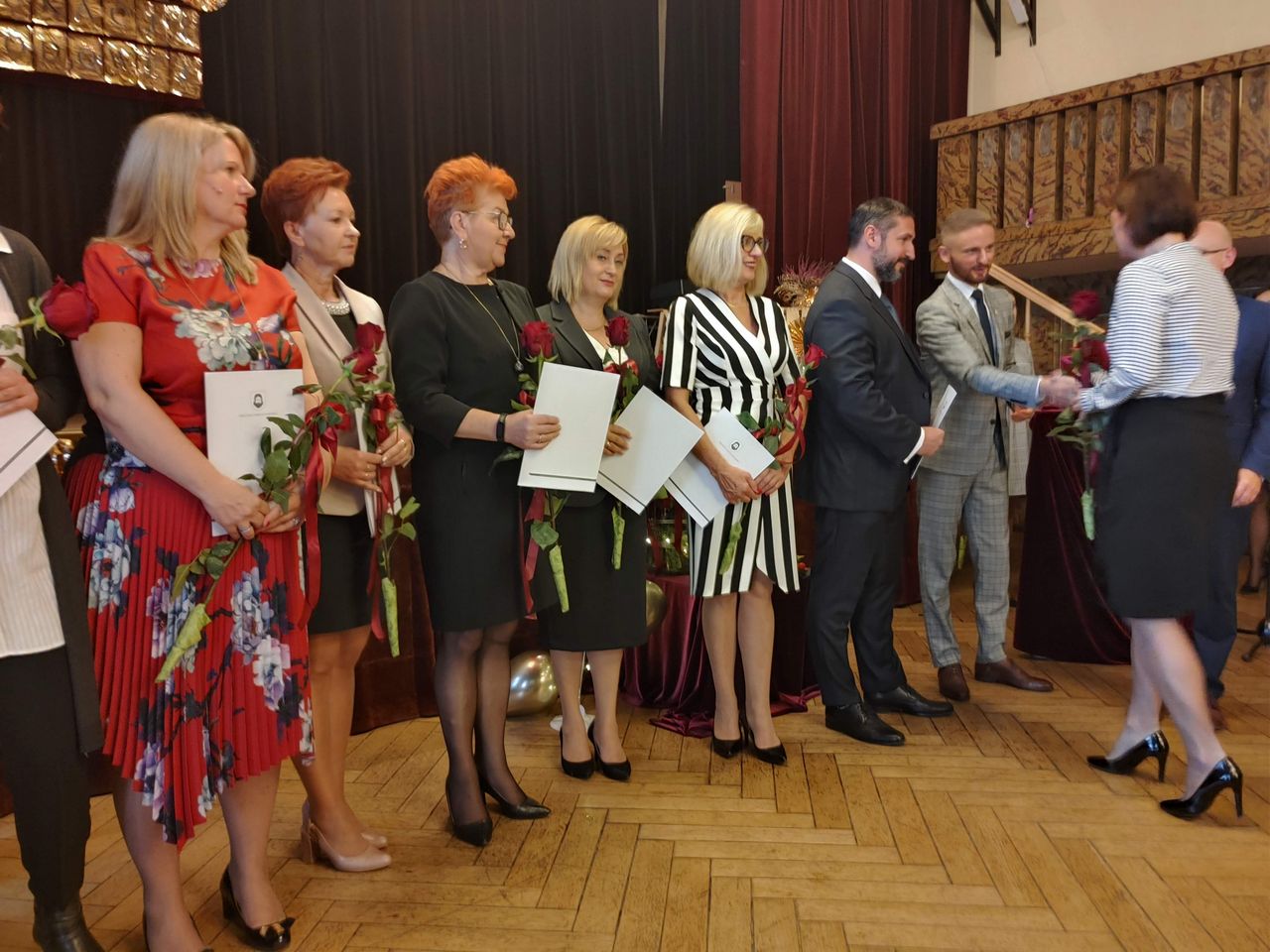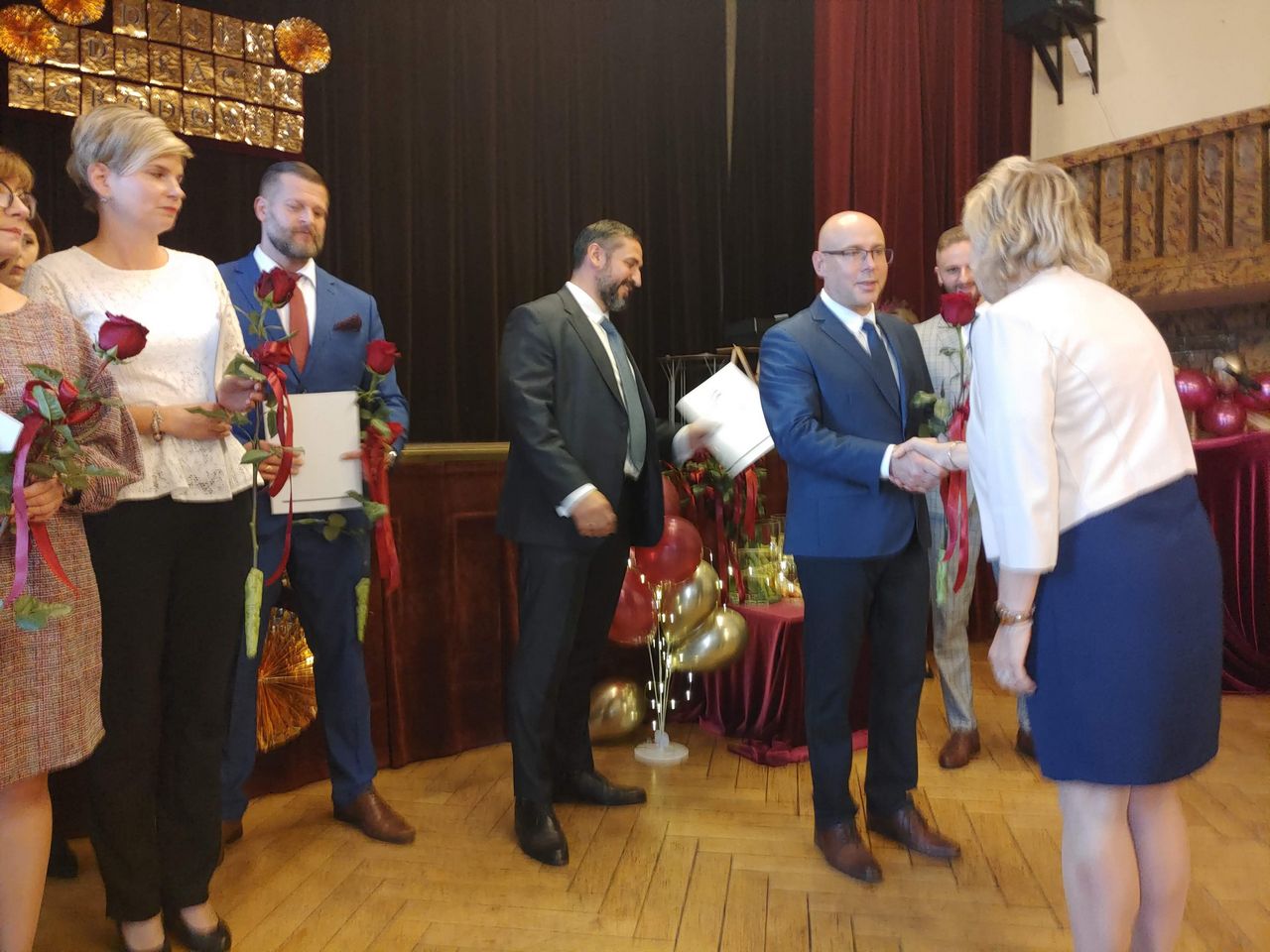 Życzenia nagrodzonym złożył Prezydent Miasta Mysłowice Pan Dariusz Wójtowicz, Naczelnik Wydziału Edukacji Pani Małgorzata Słonina, w imieniu Rady Miasta Przewodnicząca Komisji Edukacji Pani Joanna Pniok, Przewodnicząca MOZ Solidarność Grażyna Chomiuk.