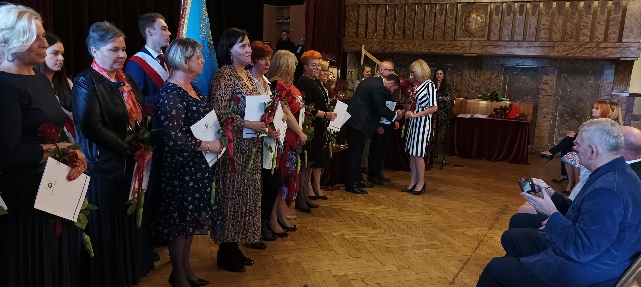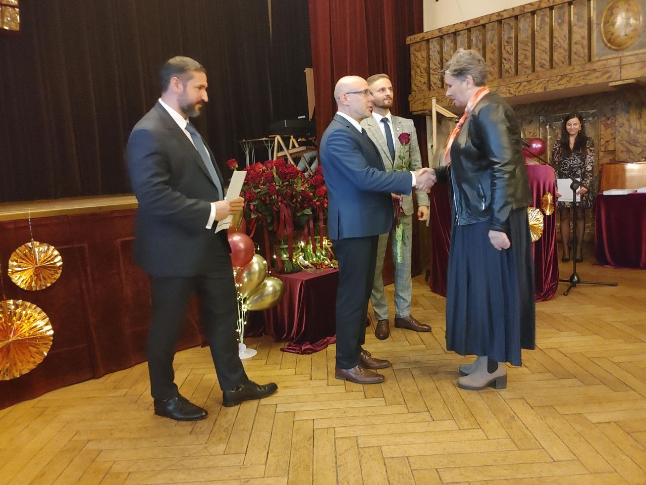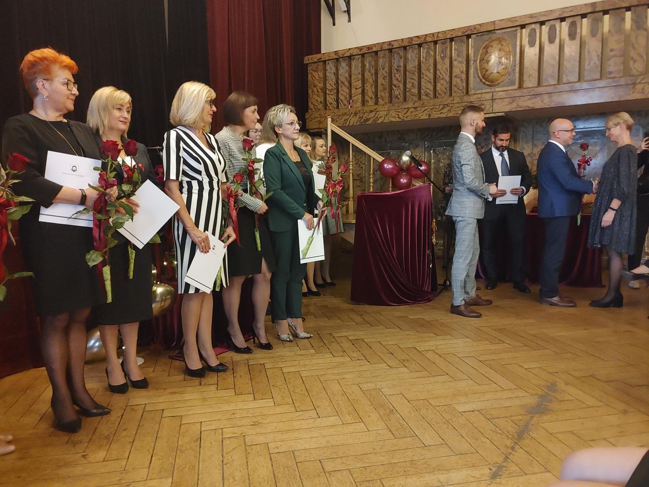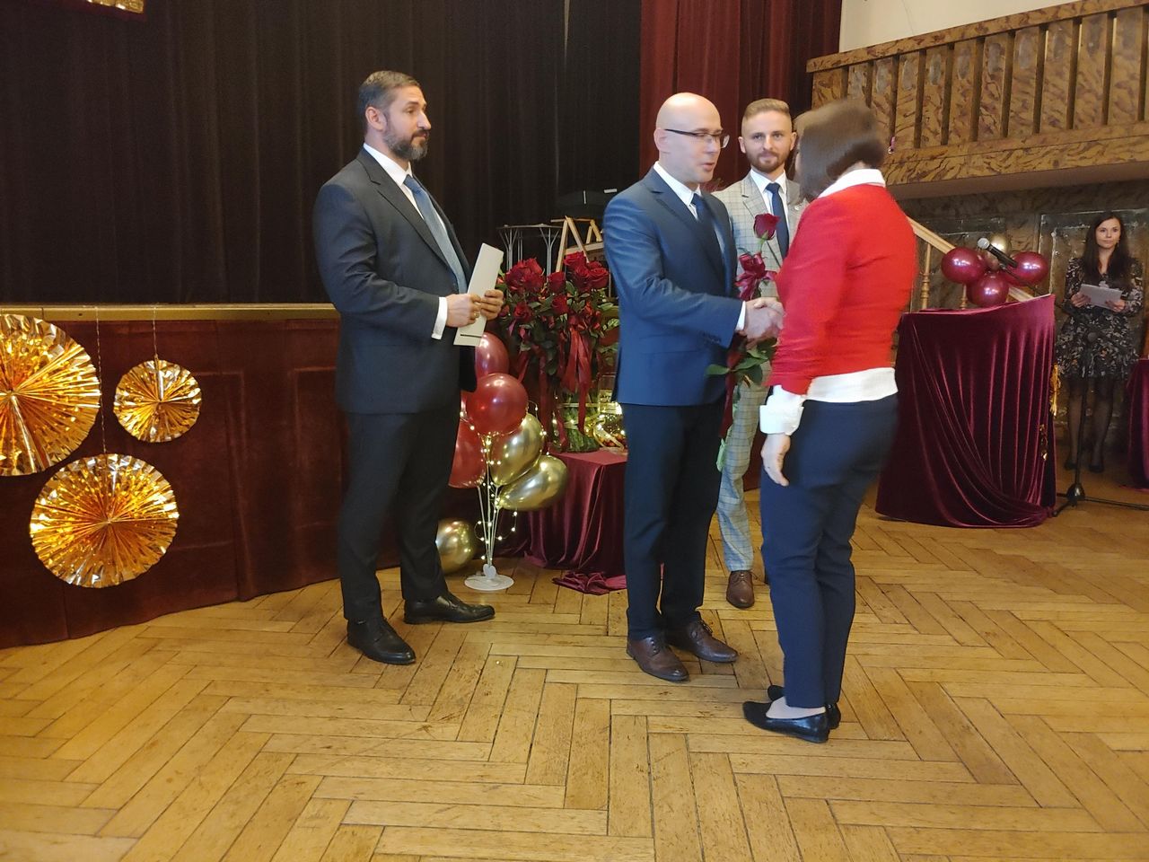 Życzenia nagrodzonym złożył Prezydent Miasta Mysłowice Pan Dariusz Wójtowicz, Naczelnik Wydziału Edukacji Pani Małgorzata Słonina, w imieniu Rady Miasta Przewodnicząca Komisji Edukacji Pani Joanna Pniok, Przewodnicząca MOZ Solidarność Grażyna Chomiuk.