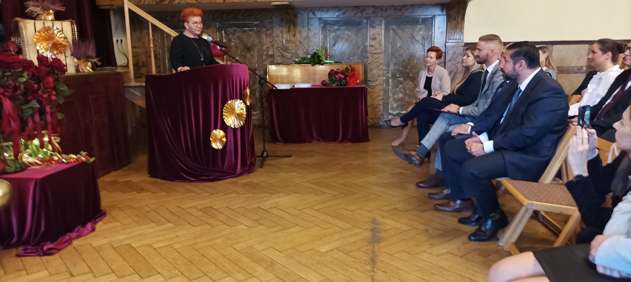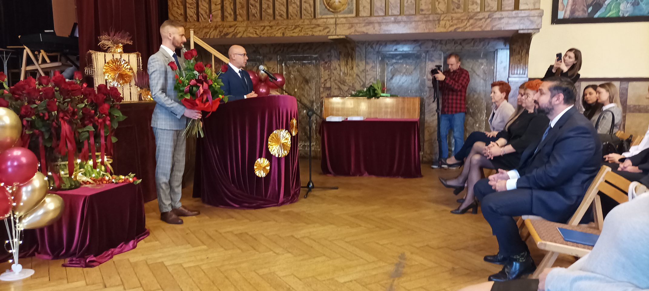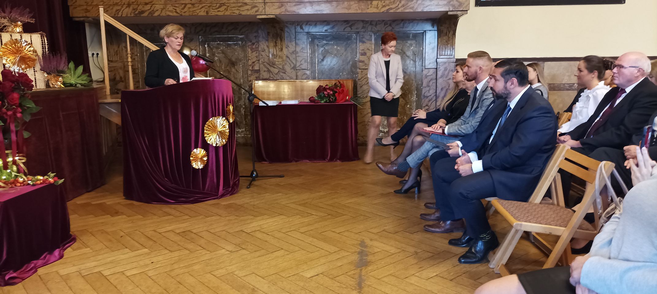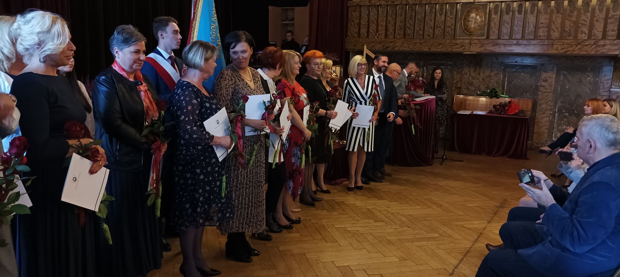 Życzenia nagrodzonym złożył Prezydent Miasta Mysłowice Pan Dariusz Wójtowicz, Naczelnik Wydziału Edukacji Pani Małgorzata Słonina, w imieniu Rady Miasta Przewodnicząca Komisji Edukacji Pani Joanna Pniok, Przewodnicząca MOZ Solidarność Grażyna Chomiuk.