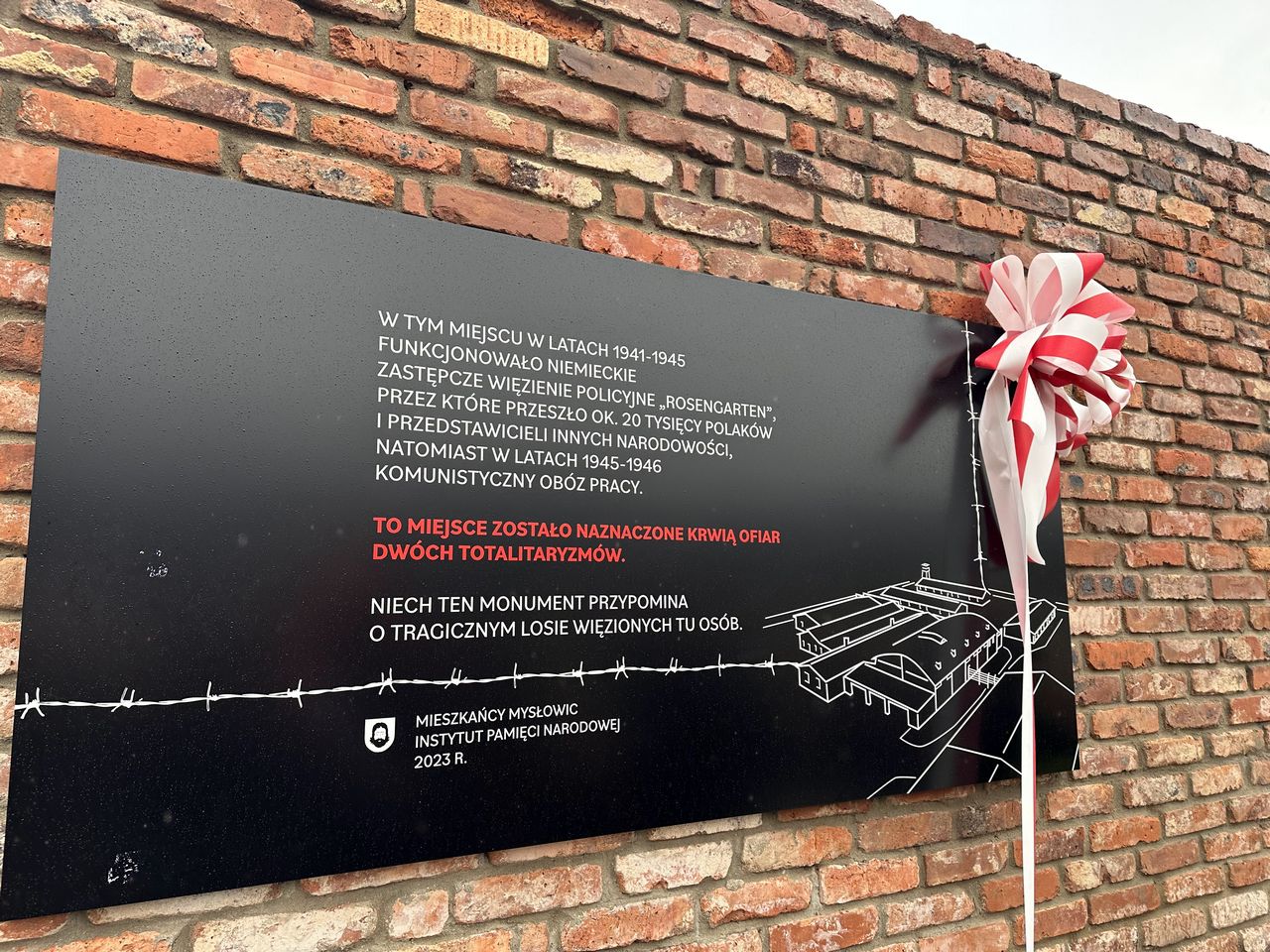 W TYM MIEJSCU W LATACH 1941-1945 FUNKCJONOWAŁO NIEMIECKIE ZASTĘPCZE WIĘZIENIE POLICYJNE ROSENGARTEN", PRZEZ KTÓRE PRZESZŁO OK. 20 TYSIĘCY POLAKÓW I PRZEDSTAWICIELI INNYCH NARODOWOŚCI, NATOMIAST W LATACH 1945-1946 KOMUNISTYCZNY OBÓZ PRACY.