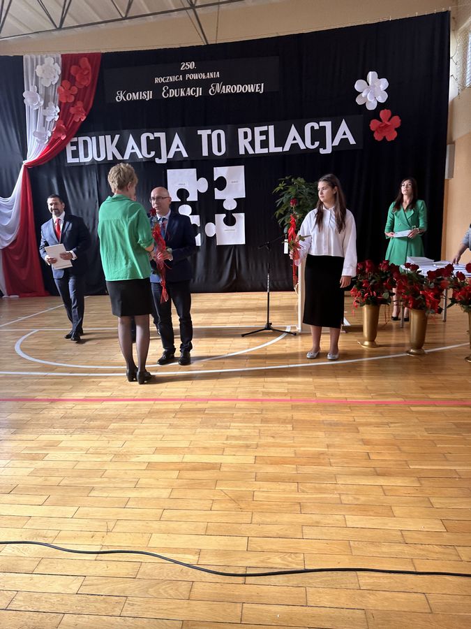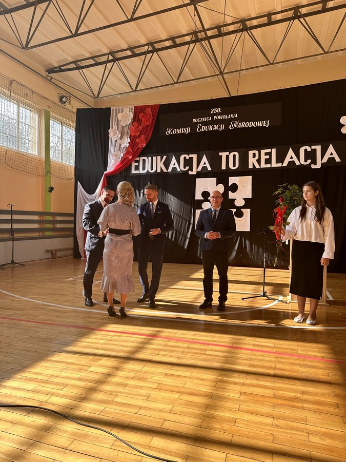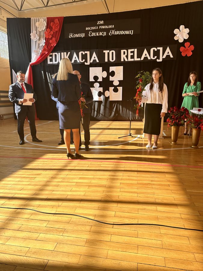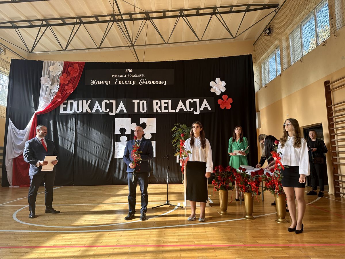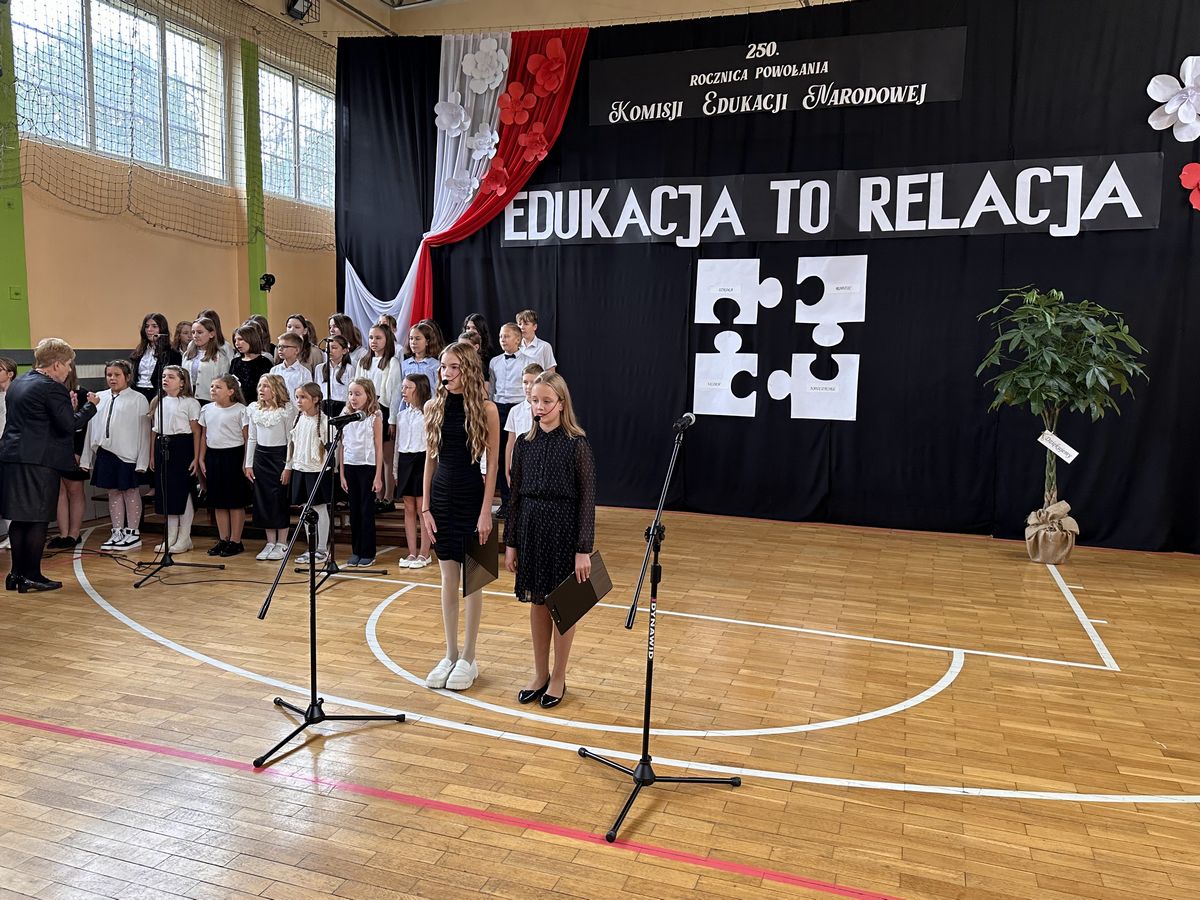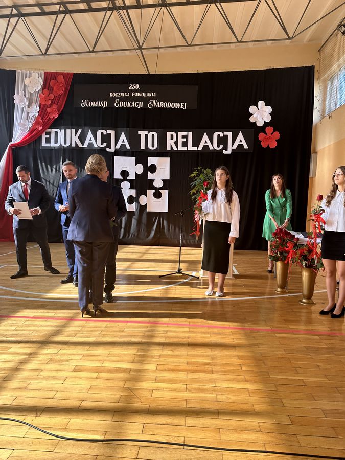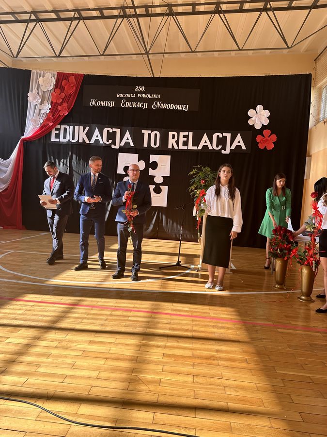 Dyrekcja szkoły, nauczyciele i uczniowie przygotowali piękny program artystyczny z okazji 250.rocznicy powołania Komisji Edukacji Narodowej zatytułowany „Edukacja to relacja”.