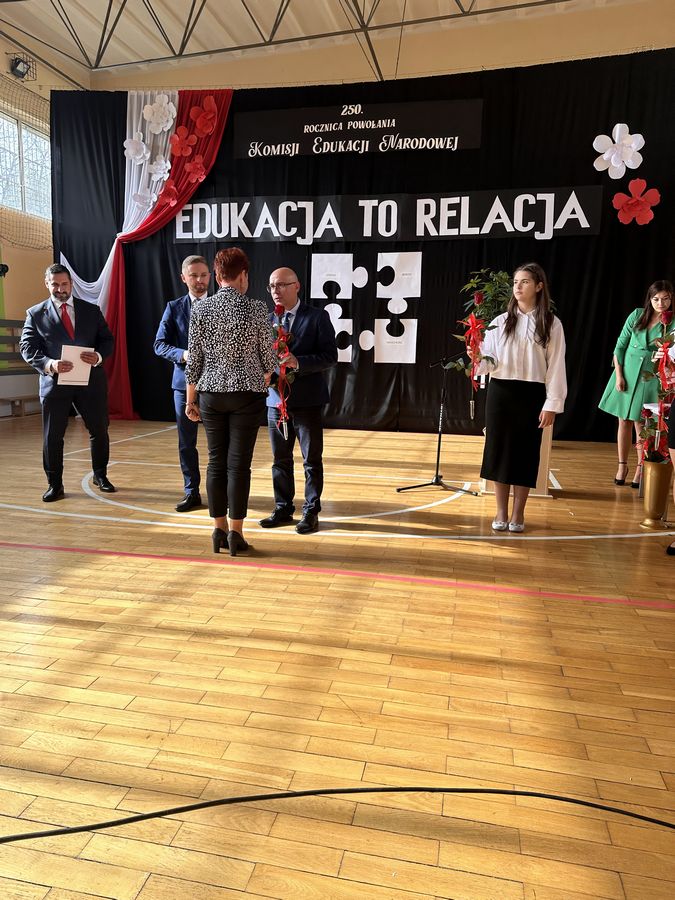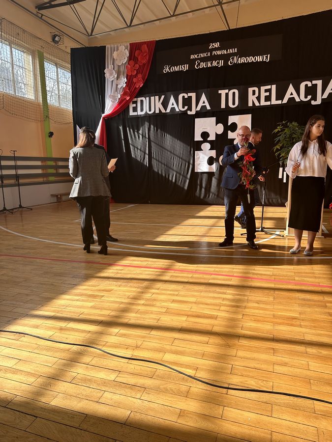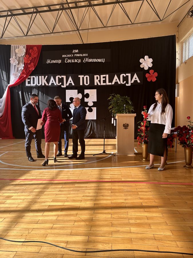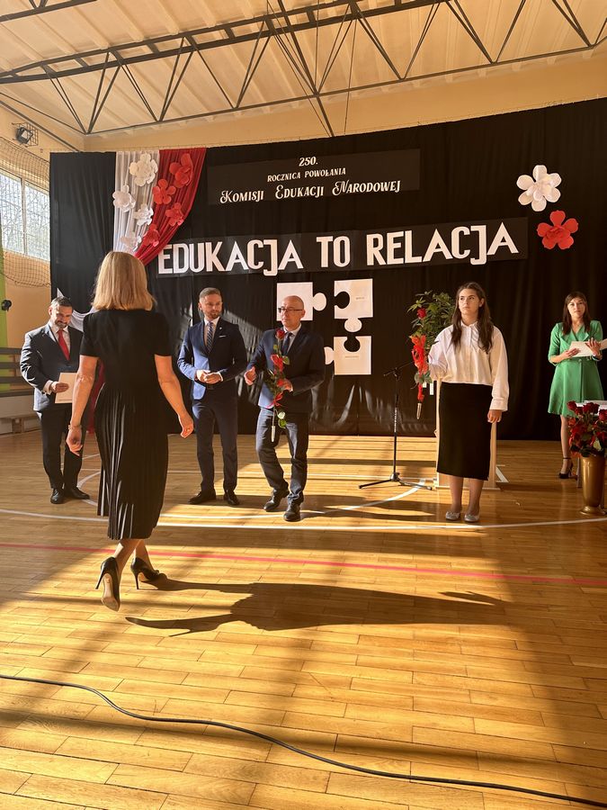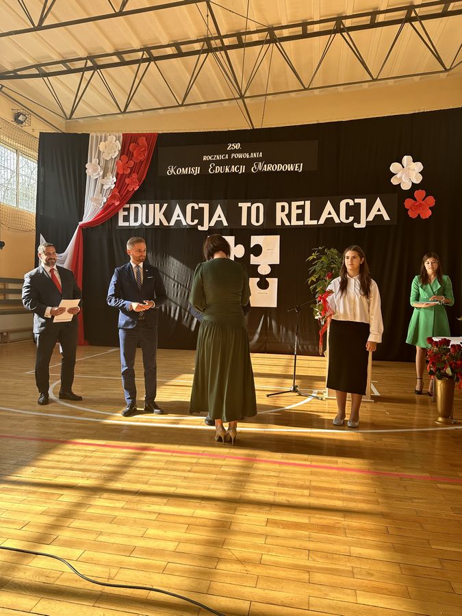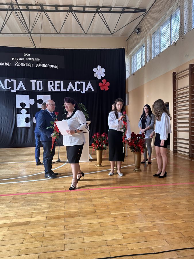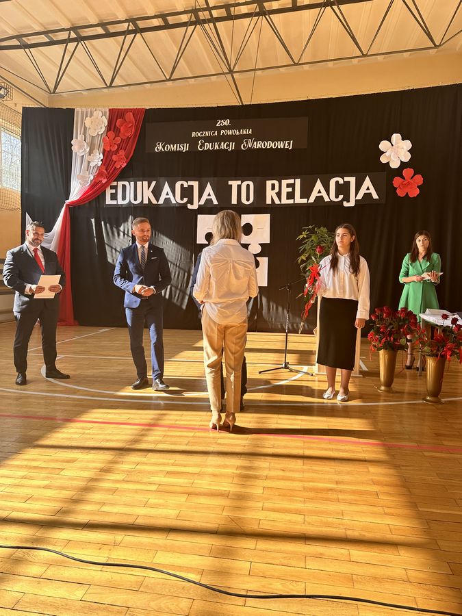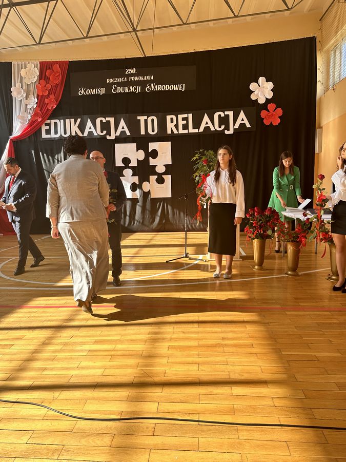 Dyrekcja szkoły, nauczyciele i uczniowie przygotowali piękny program artystyczny z okazji 250.rocznicy powołania Komisji Edukacji Narodowej zatytułowany „Edukacja to relacja”.