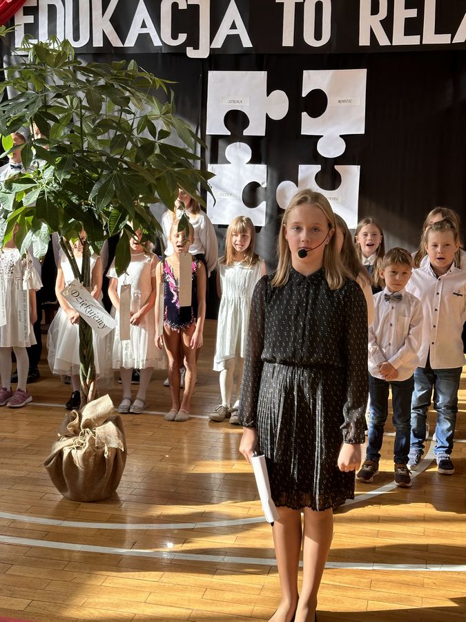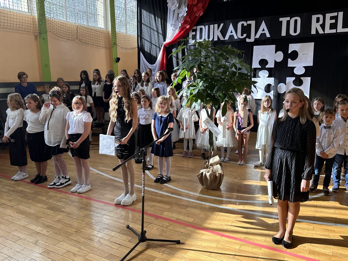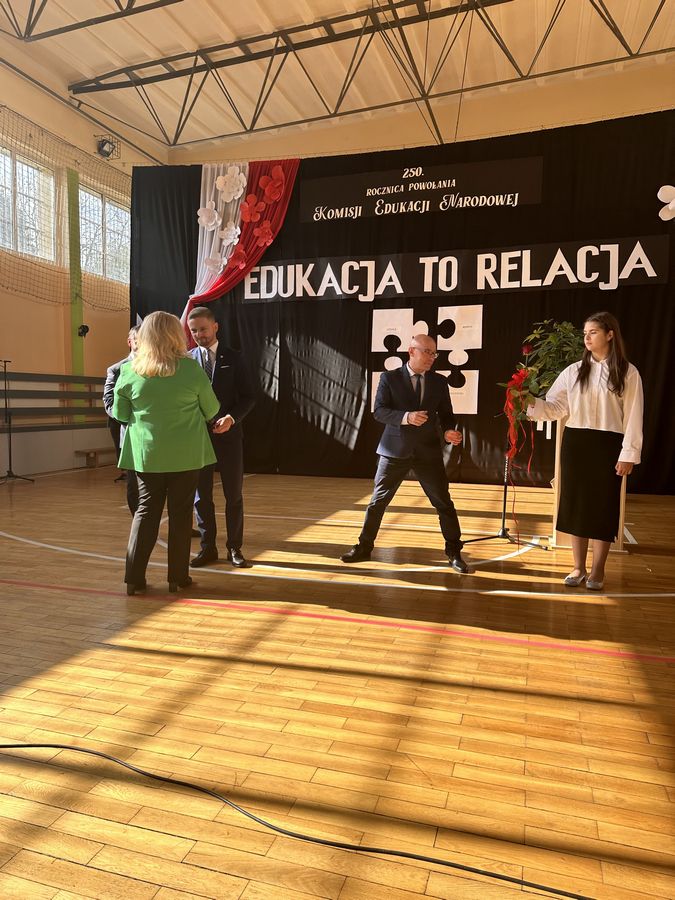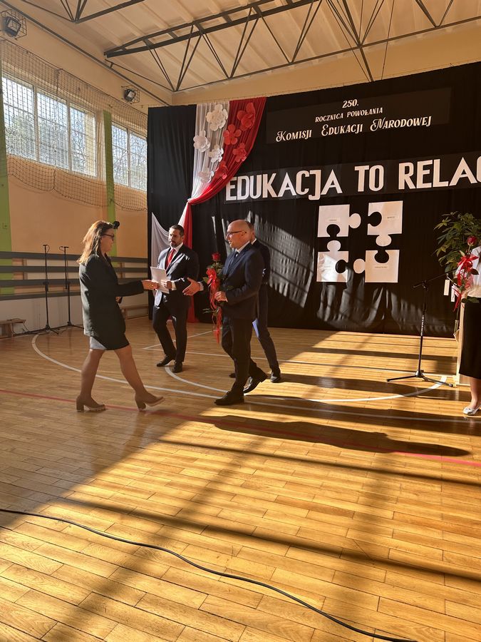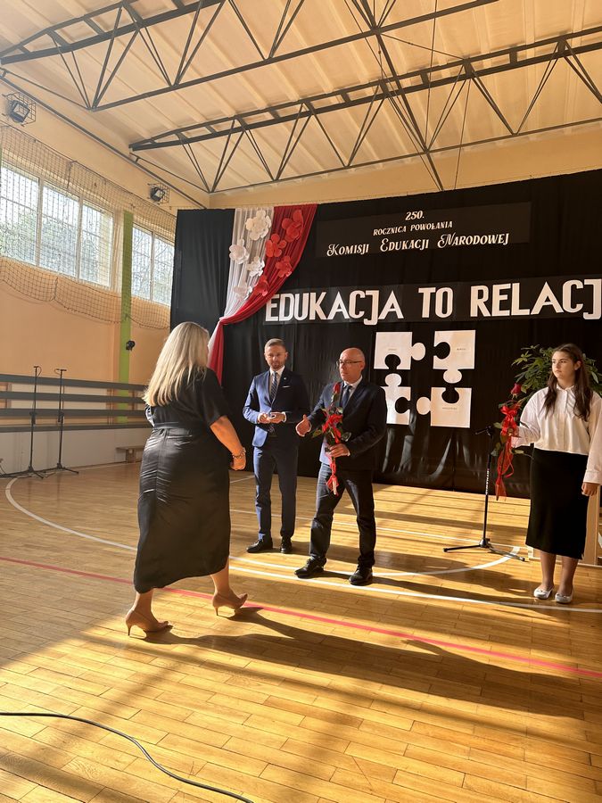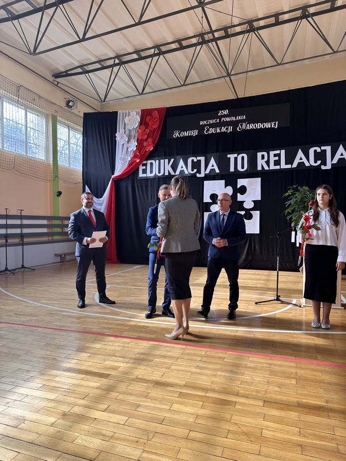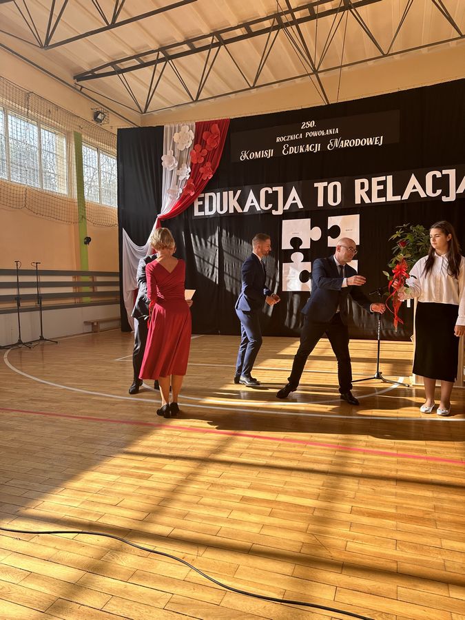 Dyrekcja szkoły, nauczyciele i uczniowie przygotowali piękny program artystyczny z okazji 250.rocznicy powołania Komisji Edukacji Narodowej zatytułowany „Edukacja to relacja”.