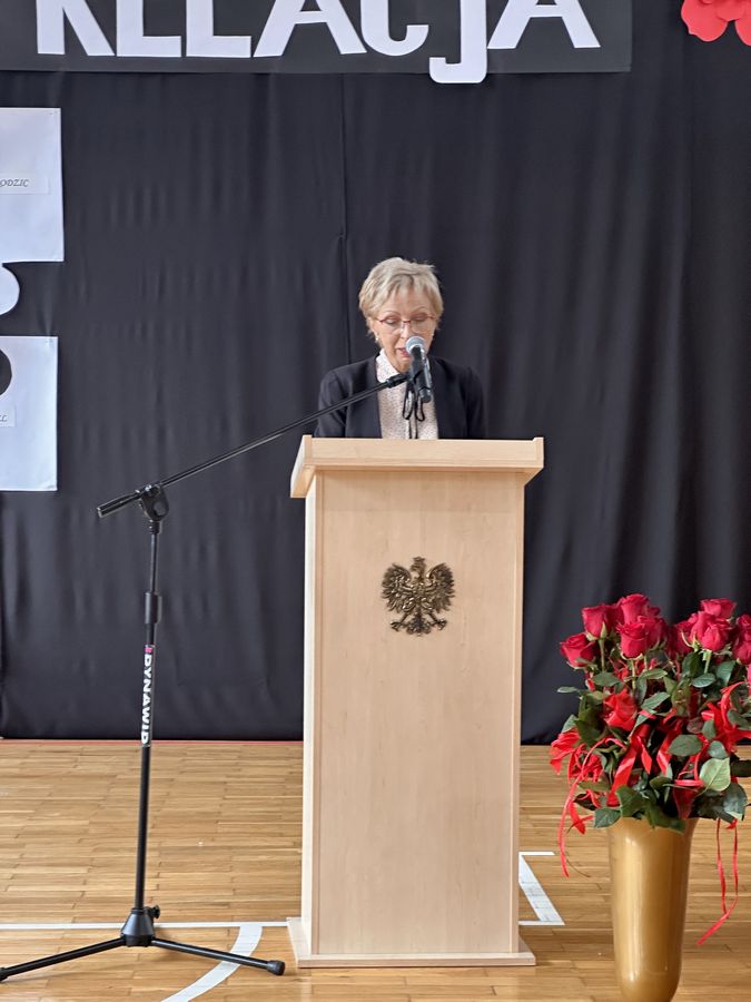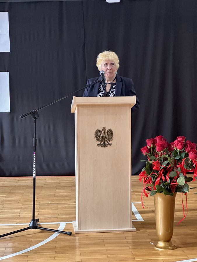 Przedstawiciel KO z Sosnowca Pani wizytator Celina Stach odczytała uroczysty list Śląskiego Kuratora Oświaty Pani Urszuli Bauer.