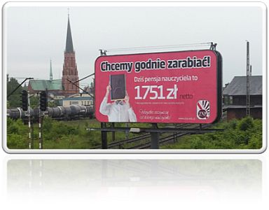 Na prezentowanym zdjęciu bilbord z naszej kampani "Chcemy godnie zarabiać" z Mysłowic: