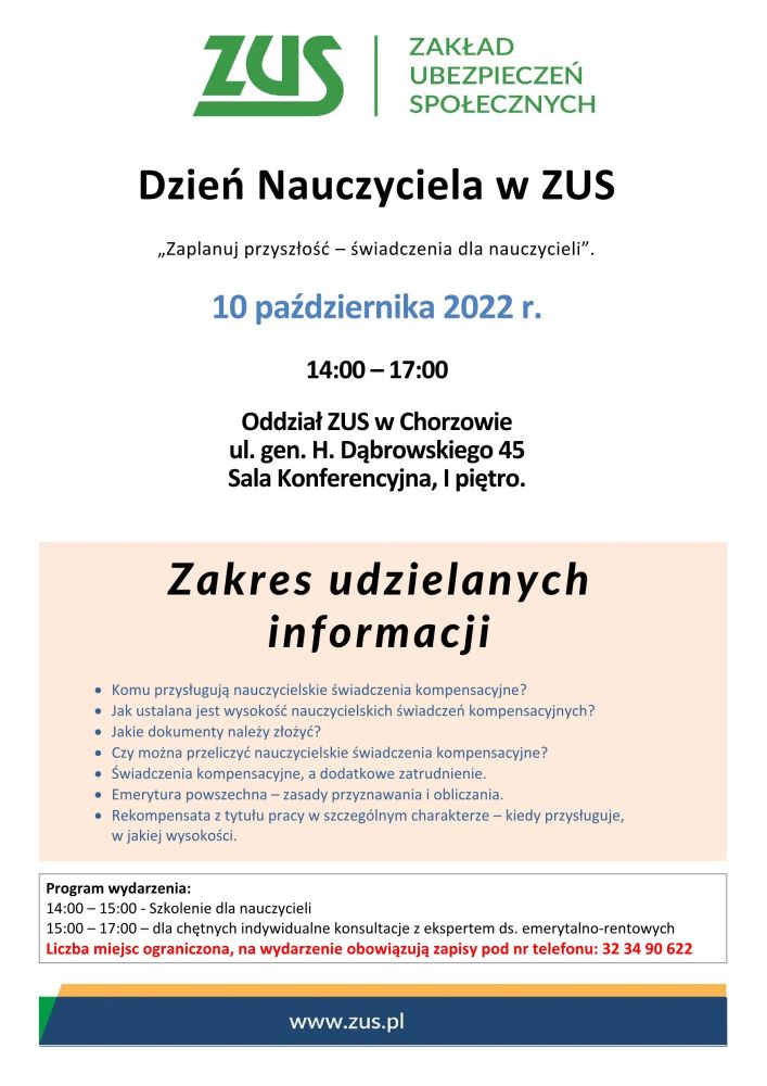 - 25 maja, godz. 12.00 - szkolenie z pracownikami ZUS - temat: "Uprawnienia emerytalne i świadczenia kompensacyjne dla nauczycieli" - stacjonarne w Elektroniku w Sosnowcu-dla wszystkich zainteresowanych Członków ZNP